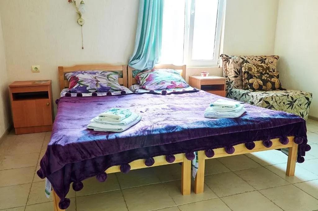 Номерной фонд: 2-х местный номер с двуспальной кроватью, дополнительным местом кресло-кроватью и удобствами (умывальник, душ, туалет), холодильник, телевизор, кондиционер; 3-х местный номер с двуспальной кроватью, диван-кроватью и удобствами (умывальник, душ, туалет), холодильник, телевизор, кондиционер. Доступ к сети интернет в каждом номере, смена постельного белья и полотенец один раз в 5 дней, уборка в номере самостоятельно. Холодная и горячая вода – постоянно (возможны перебои в подаче воды ЖКХ) вода нагревается бойлерами и от солнечных батарей (гелиосистема).