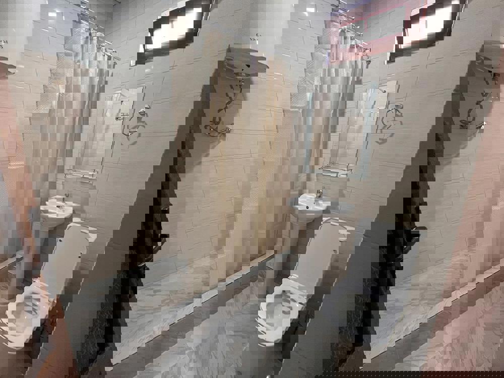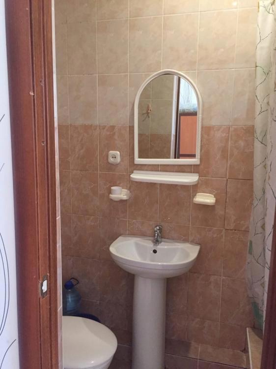 3-х местный стандарт ( с общим балконом) : 1 комнатный, 2 этаж, двуспальная кровать, односпальная кровать, тумбочка, шкаф ,стул, WI-FI, кондиционер ,ТВ. Санузел в номере - круглосуточно горячая и холодная вода. Без питания: на этаже есть мини кухня для гостей, стиральная машина, чайник, утюг.