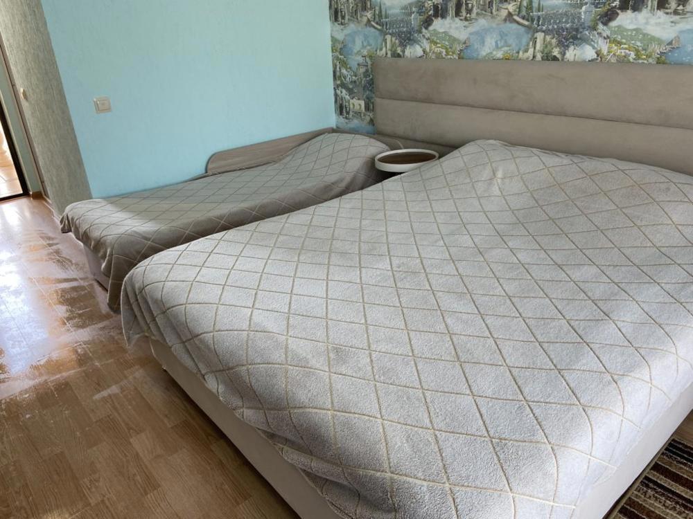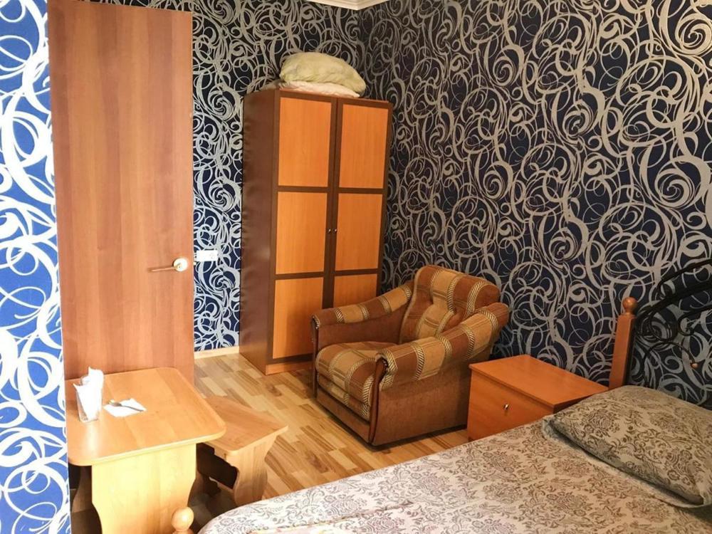 4-х местный с общим балконом (3 этаж):1 комнатный, 2 этаж, двуспальная, односпальная кровать и кресло-кровать, тумбочка, шкаф ,стул, WI-FI, кондиционер, ТВ. Санузел в номере - круглосуточно горячая и холодная вода. Без питания: на этаже есть мини кухня для гостей, стиральная машина, чайник, утюг.