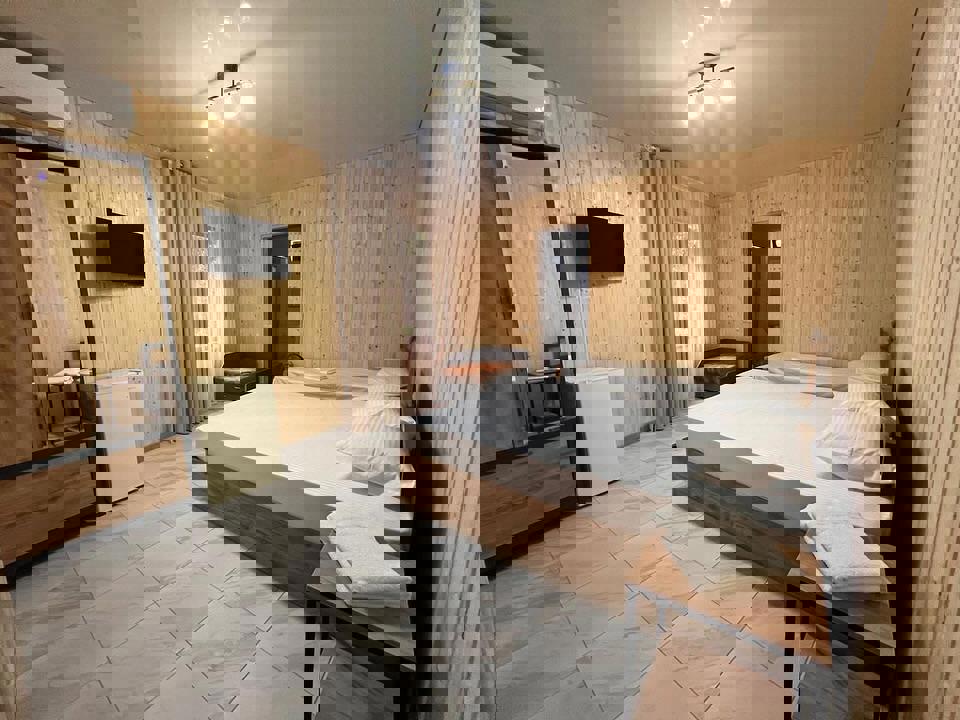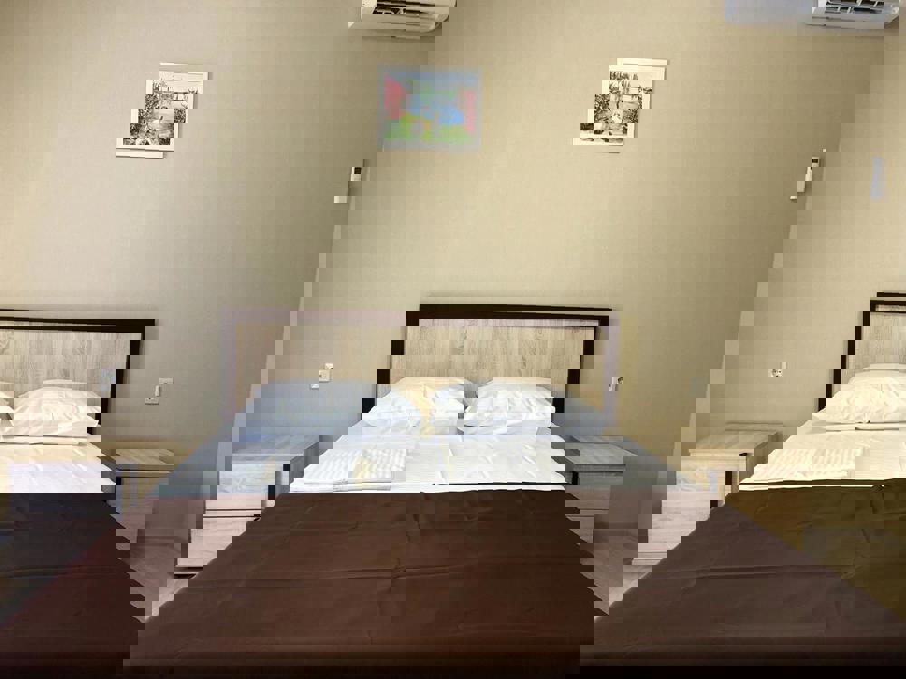 В номерах: большая двуспальная кровать, дополнительные спальные места, собственная ванная комната, холодильник, телевизор и Wi-Fi интернет, кондиционер, вместительный шкаф.