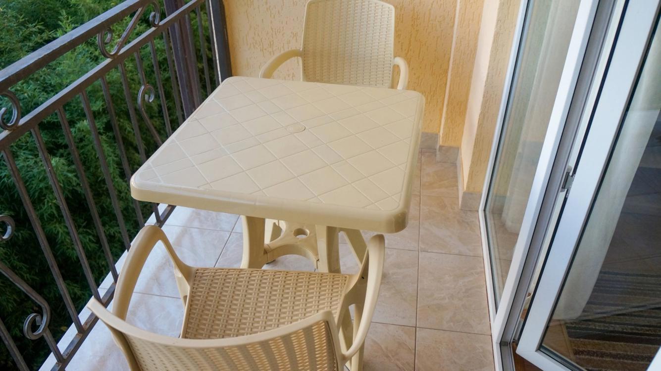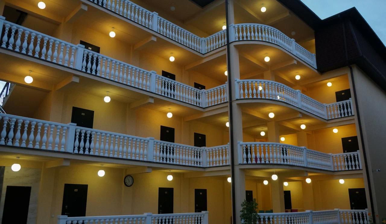 Отельный комплекс, занимающий благоустроенную озелененную территорию, состоит из двух 3-х этажных корпусов (без лифта). Гостей ожидает 48 номеров категории Стандарт. Все номера оснащены душем, кондиционером, есть телевизор и холодильник, имеются открытые террасы, с которых открываются виды на горы