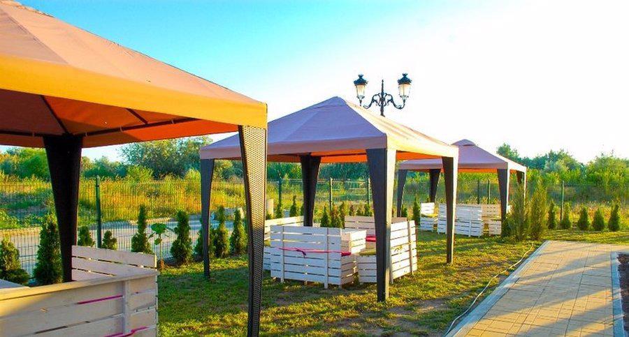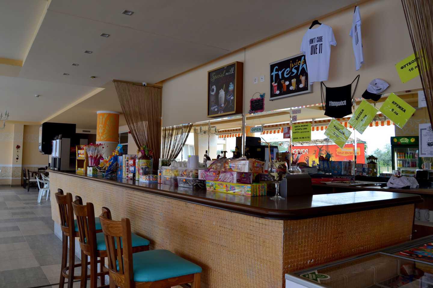 Территория отеля украшена пальмами и цветами, а в вечернее время освещается подводными и надводными прожекторами. По периметру находятся шатровые беседки с отрядными местами, бильярд, электронные игры, настольный теннис, дартс.