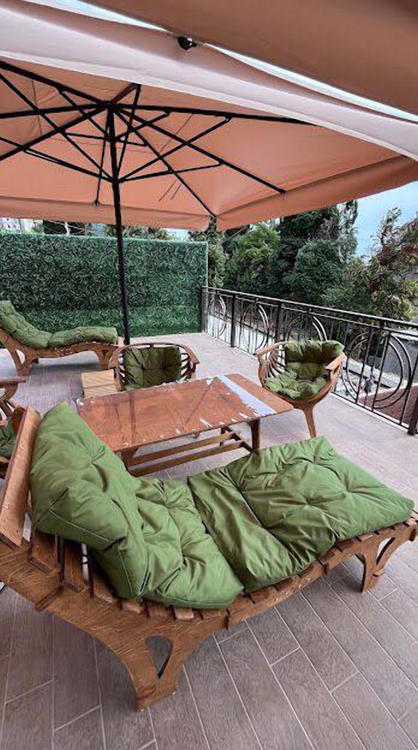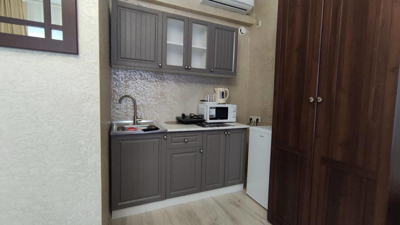 В номерах современная мебель, холодильник, телевизор, кондиционер, санузел. Выход из всех номеров на общий балкон. Имеется просторная кухня под навесом.