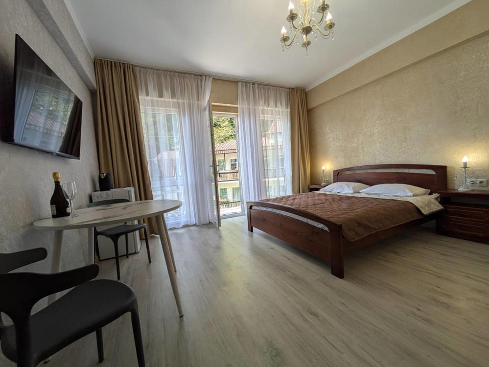 Размещение в трехэтажном здании в номерах категории Стандарт. В 2-3-х местных номерах кровать, диван-кровать, стулья, шкаф, прикроватные тумбочки, журнальный столик, вешалка, зеркало, сплит-система, холодильник, телевизор, спутниковое ТВ, Wi-Fi интернет, фен, санузел и душ в номере (совмещены), балкон или выход на общий балкон. Дополнительное место – раскладной диван. Для самостоятельного приготовления пищи есть общая кухня.