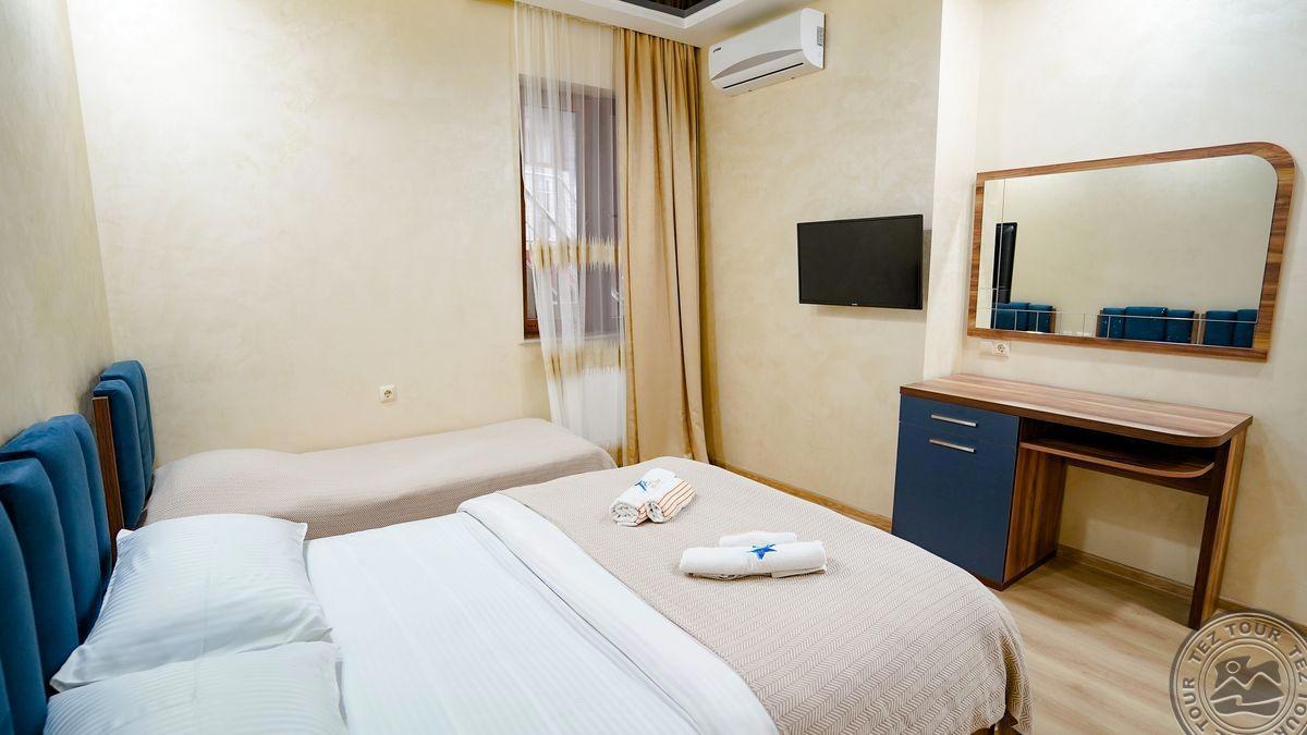 2-х местный номер: 2-х спальная кровать. Ванная комната, туалет, кондиционер, телевизор, холодильник, чайник;