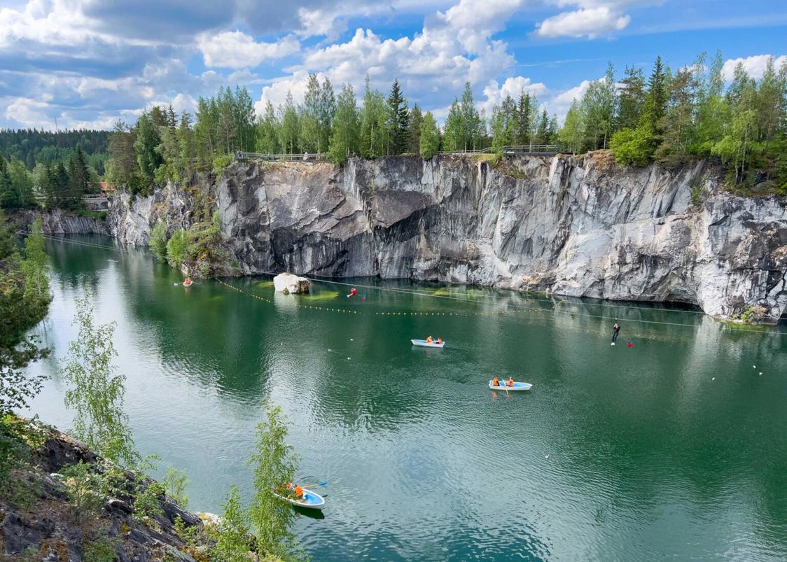 09.00 Отправление в горный парк Рускеала. По дороге посещение Рускеальских водопадов больше известных как место, где проходили съемки знаменитого фильма «А зори здесь тихие». Рускеальский мраморный каньон – жемчужина Карелии, созданная природой, человеком и самой судьбой. Мраморные чаши озер с чистейшей карельской водой незабываемы в обрамлении светлых крон берез и темных елей. Рускеала — бывшая каменоломня, где добывались красивейшие сорта мрамора, которые теперь украшают Исаакиевский собор, Михайловский замок и другие постройки Санкт-Петербурга. В 20 веке Рускеала превратилась в озеро с мраморными берегами и изумрудной водой. Вы увидите многотонные мраморные глыбы на глубине нескольких метров, входы в подводные и надводные штольни, проложенные в толще породы, причудливый пейзаж, созданный невольным сотворчеством природы и человека. Катание на лодках по каньону (по желанию за доп.плату. 200 рос.руб. на 1 чел.)