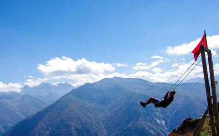 По дороге из Города мертвых Даргавс в посёлок Верхний Фиагдон, остановимся на самом верху, откуда открывается шикарный вид на горы и лежащий у его подножия поселок, установлены, в целом, обычные на вид качели, но это качели над пропастью –новая, излюбленная туристами локация.