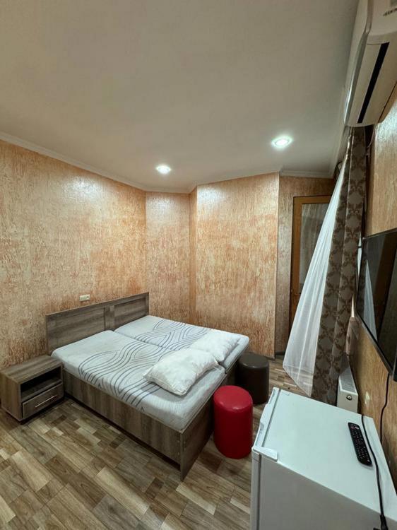 В каждом номере есть: ванная комната с душем, полотенца, холодильник, кондиционер, телевизор, министолики и пуфы.