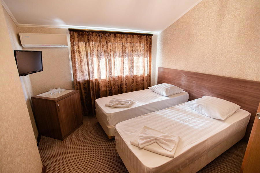 2-х местные номера категории эконом. В номерах односпальные/двуспальные кровати, шкаф, кондиционер, телевизор, холодильник, стол, Wi-Fi. Санузел и душ оборудованы в номере. Для гостей в каждом номере установлен кондиционер, телевизор, холодильник, Wi-Fi, оборудован санузел