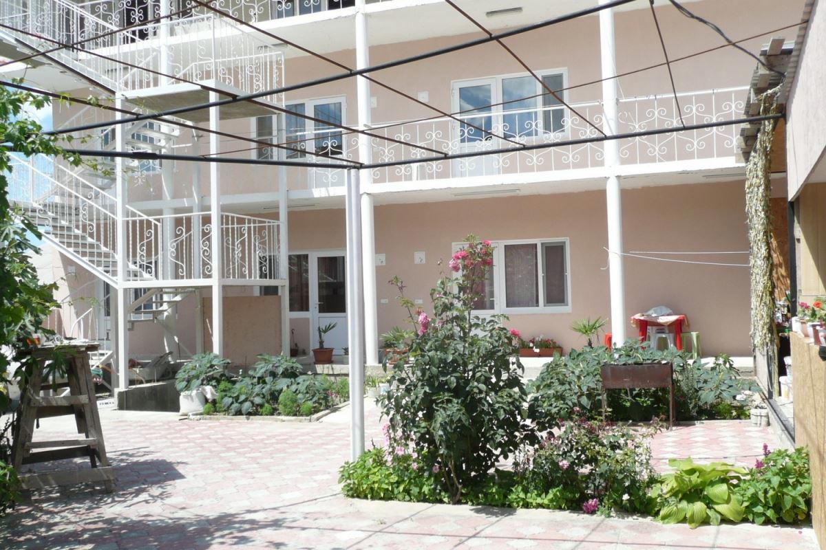 Гостевой дом "Итальянский дворик" это современное трехэтажное здание на 20 номеров с отдельным входом в каждый номер, выполненное в итальянском стиле. Размещение в 1-2-3-х местных номерах оснащенных мебелью современного дизайна, телевизорами, холодильниками, кондиционерами. В каждом номере душ, туалет, умывальник. Питание организовано за дополнительную оплату. Возможности для самостоятельного приготовления пищи – нет. Холодная и горячая вода постоянно. Расстояние до пляжа 600 метров, 2-й городской «Жемчужина», песчаный, оборудованный навесами, лежаками, источником пресной воды, туалетом. Вход на пляж бесплатный, услуги на пляже за оплату. Желающих доставляют на «Золотой пляж» за доп. оплату.