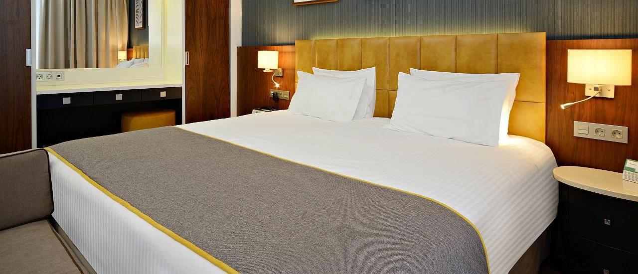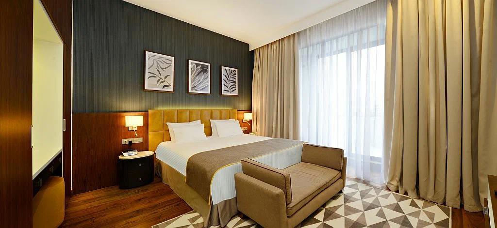 К услугам гостей: 201 номер различных категорий, 12 конференц-залов вместимостью до 300 человек, бесплатный Wi-Fi, уникальное лобби, фитнесс-центр с бассейном.